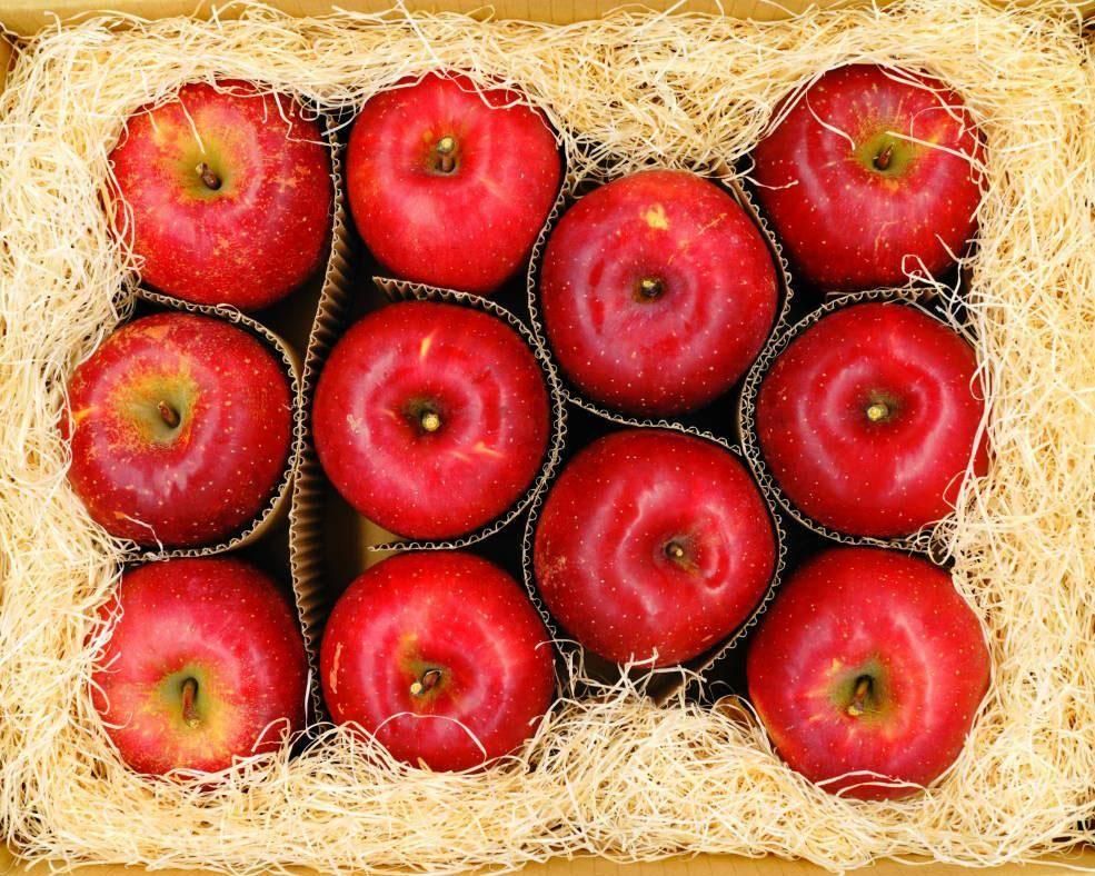 玉の大きさによって20〜32個、8kg前後のりんごが入ります。