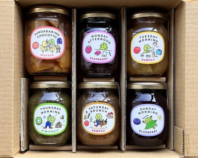 | ラズベリージャム | りんごジャム | キウイジャム | スパイスりんごジャム | ブルーベリージャム | ワッサーコンポート | |